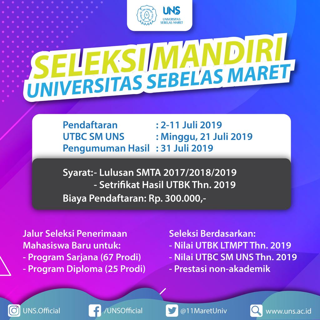 Uns Official Ar Twitter Smuns Halo Calon Mahasiswa Baru Universitas Sebelas Maret Uns 2019 Ini Dia Jadwal Dan Ketentuan Seleksi Mandiri Uns Serta Lokasi Utbc Sm Uns Kalian Bisa Langsung Cek Informasi