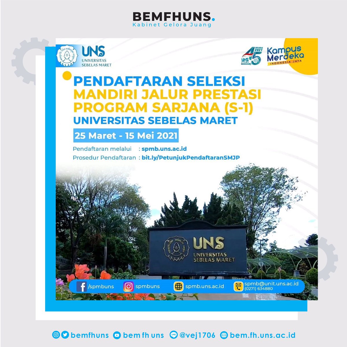 Bem Fh Uns On Twitter Info Pendaftaran Seleksi Mandiri Jalur Prestasi Program Sarjana S 1 Halo Kmfh Diberitahukan Bahwasanya Telah Dibuka Pendaftaran Seleksi Mandiri Jalur Prestasi Untuk Program Sarjana S 1 Https T Co Yiynte5p7r