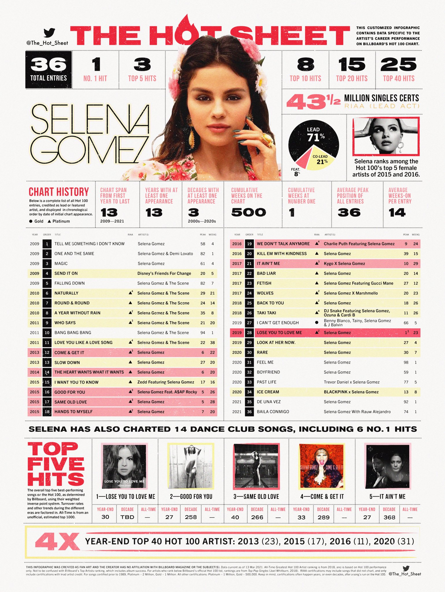 The Hot Sheet On Twitter The Hot Sheet Selena Gomez Selenagomez Billboard Hot 100 Chart History Load 4k Image For Best Viewing
