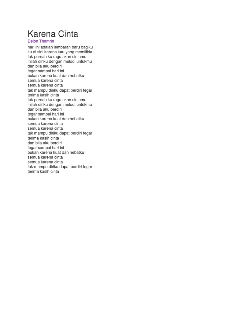 Lirik Lagu Semua Itu Karena Cinta Arsip Yuk Mulai Hidupdarikarya