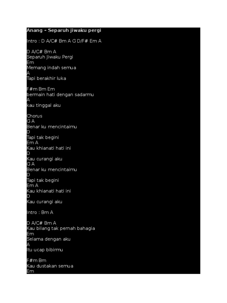 Lirik Dan Chord Lagu Separuh Jiwaku Pergi Anang Zonakamu