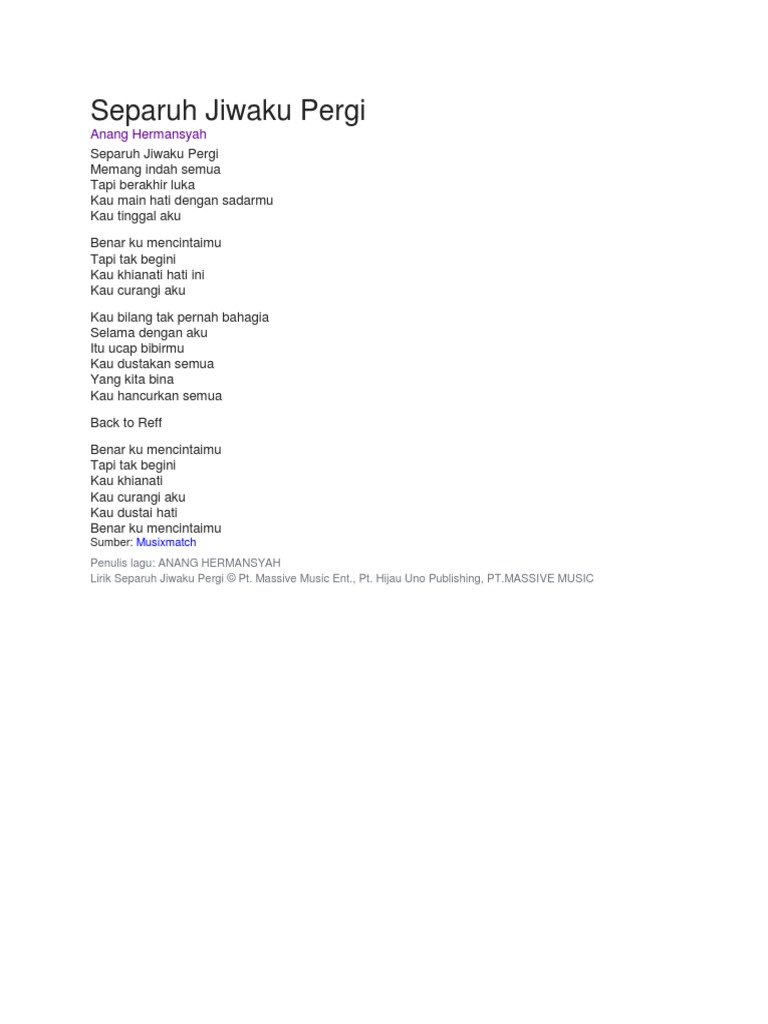 Separuh Jiwaku Pergi By Anang Hermansyah Reverbnation