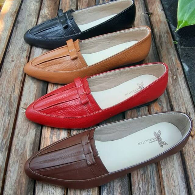 Jual Sepatu Flat Kulit Cantik Wanita Bahan Kulit Sapi Super Murah Bagus