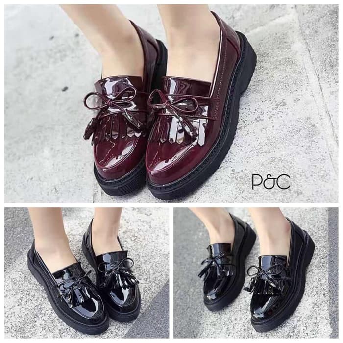 Jual Sepatu Oxford Wanita Bertali Bahan Kulit Warna Hitam Gaya Kab Bogor Bldyes Tokopedia
