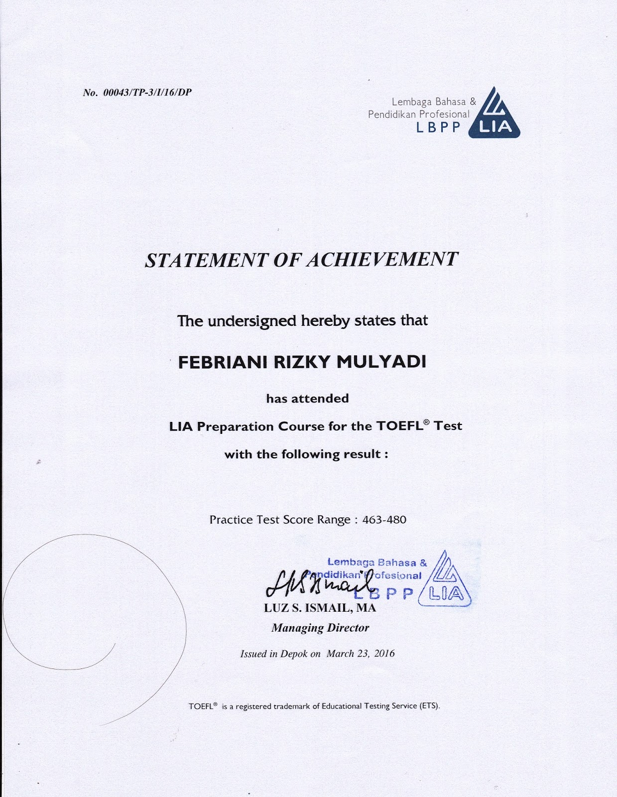 Jual Jasa Sertifikat Toefl Ept Lia Toefl Ept English Proficiency Test Lia Termurah Di Lapak Goalss Bukalapak