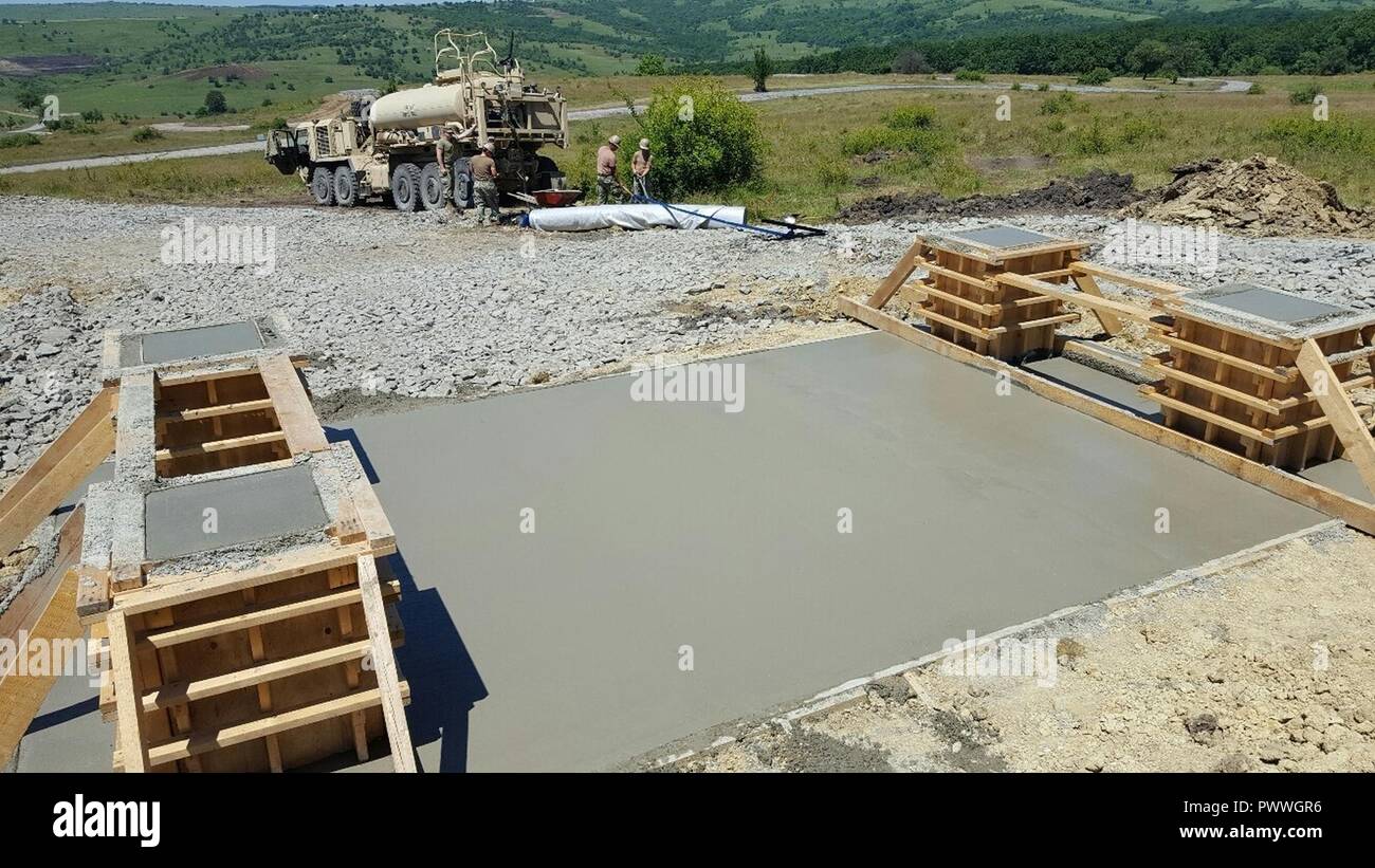 Cincu Romania June 30 2017 Seabees Assigned To Naval Mobile Construction Battalion Nmcb 1 Place Concrete For A Range Tower As Part Of Resolute Castle 17 At Joint National Training Center Cincu