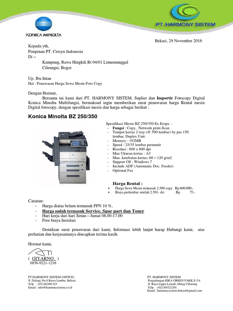 Penawaran Mesin Fotocopy Cv Budi Mulya Sejahtera Abadi