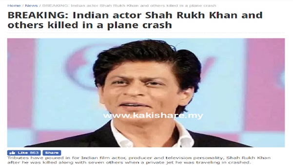 Shah Rukh Khan Meninggal Dunia Dalam Nahas Pesawat Peribadi Sinar Hairan