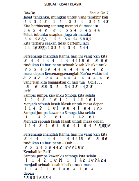 Not Angka Pianika Lagu Sheila On 7 Sebuah Kisah Klasik