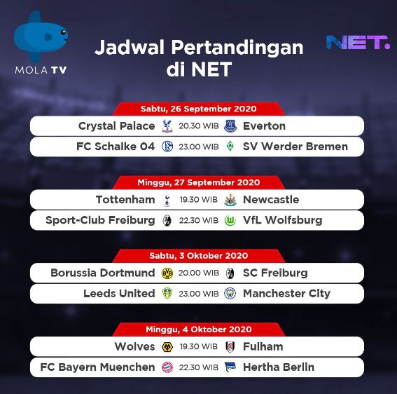 Ini Jadwal Acara Net Tv Hari Ini Minggu 13 September 2020 Ada Siaran Langsung Liga Inggris 2020 2021 Sportaliga