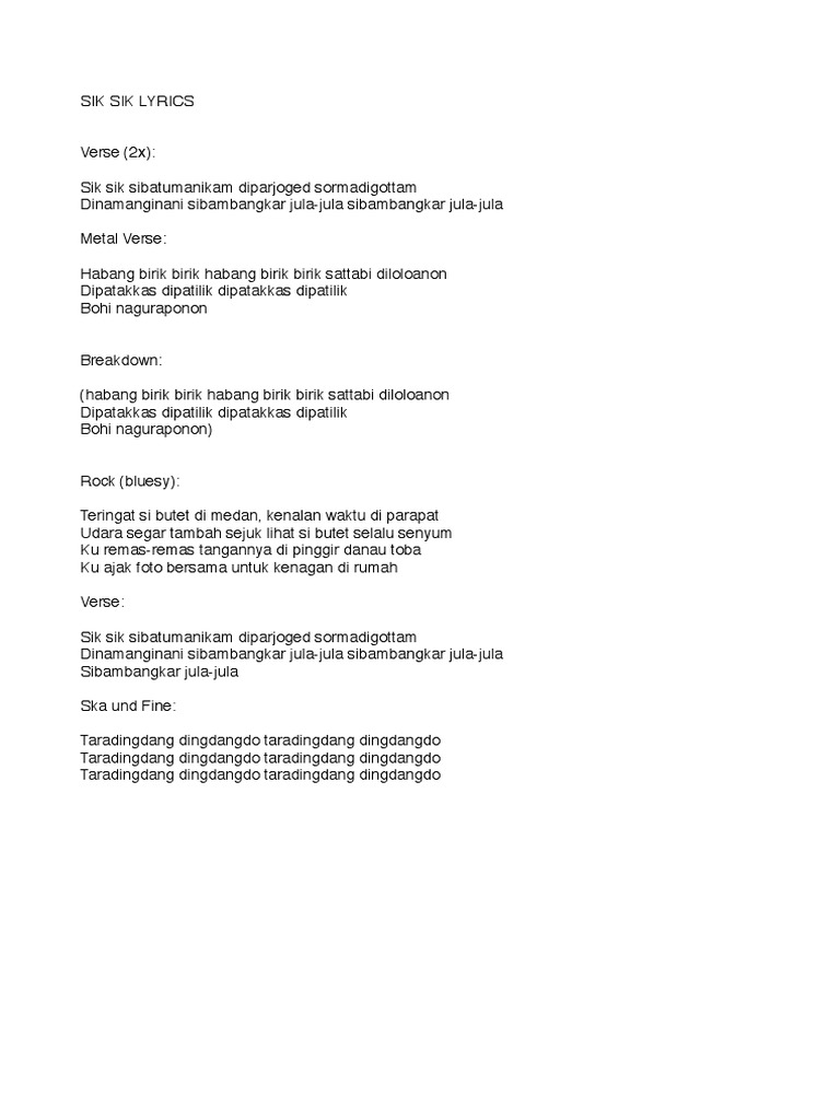 Lirik Lagu Sik Sik Sibatumanikam Siantar Rap Foundation Bonapasogit