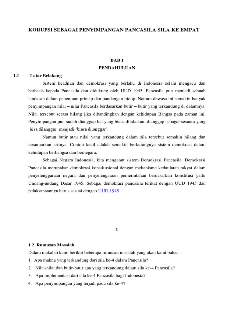 Korupsi Sebagai Penyimpangan Pancasila Sila Ke Empat Pdf