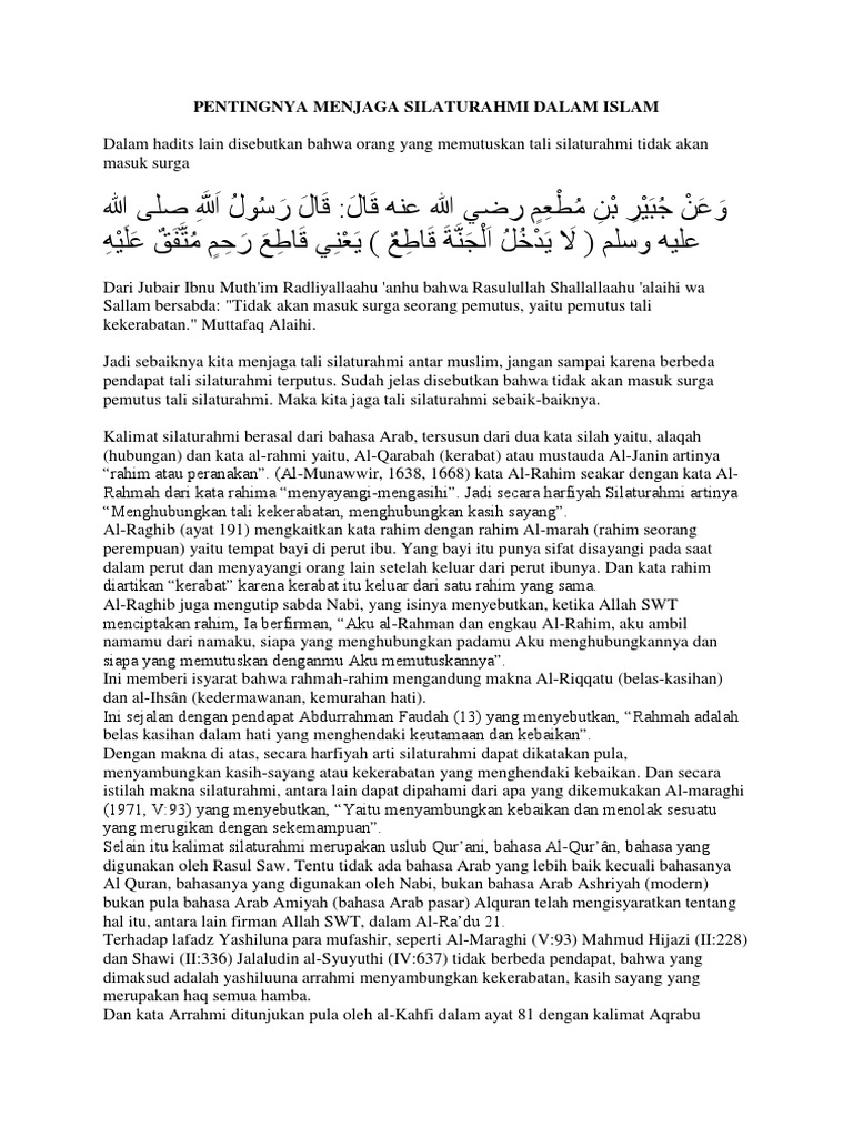 Dalil Qur An Dan Hadist Tentang Larangan Memutuskan Tali Silaturahmi Ceramah Org