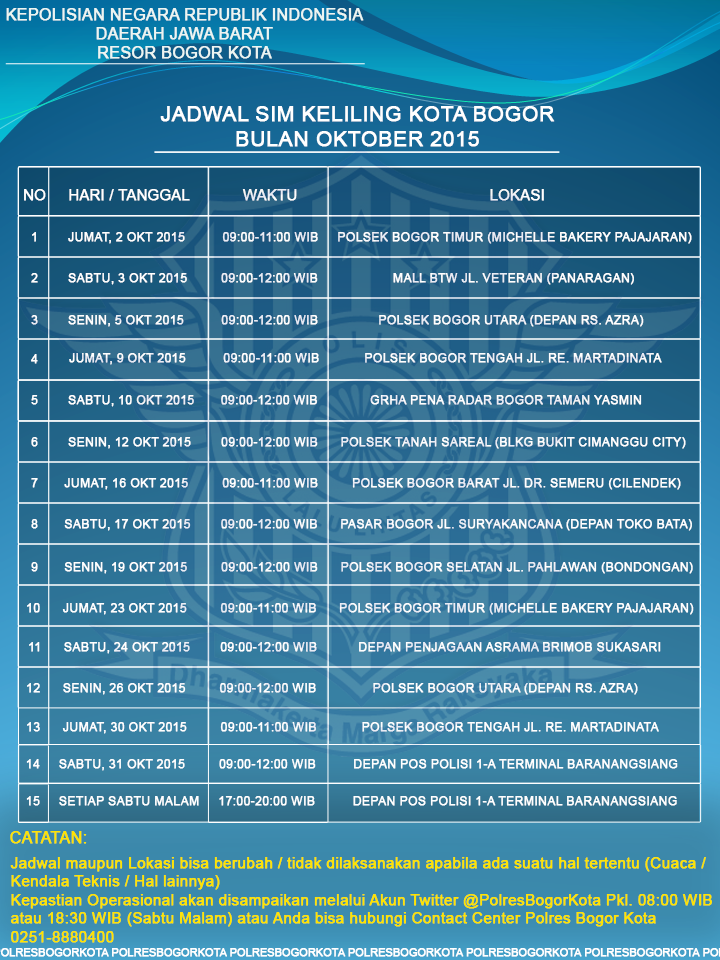 Polresta Bogor Kota No Twitter Jadwal Sim Keliling Kota Bogor Untuk Bulan Oktober 2015 Http T Co Iusochqtid