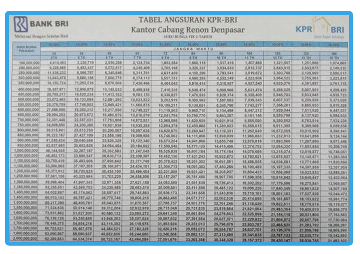 Tabel Angsuran Kpr Bank Bri 2021