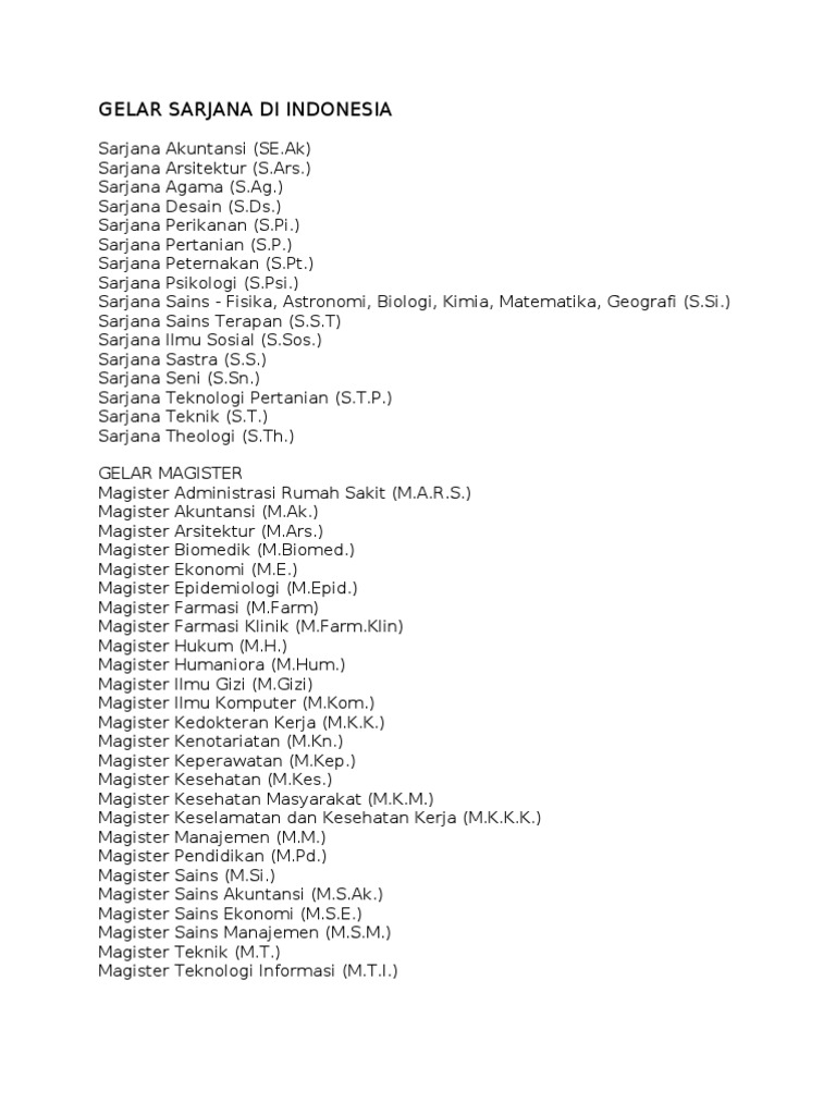 Daftar Gelar Sarjana Di Indonesia Dan Singkatannya