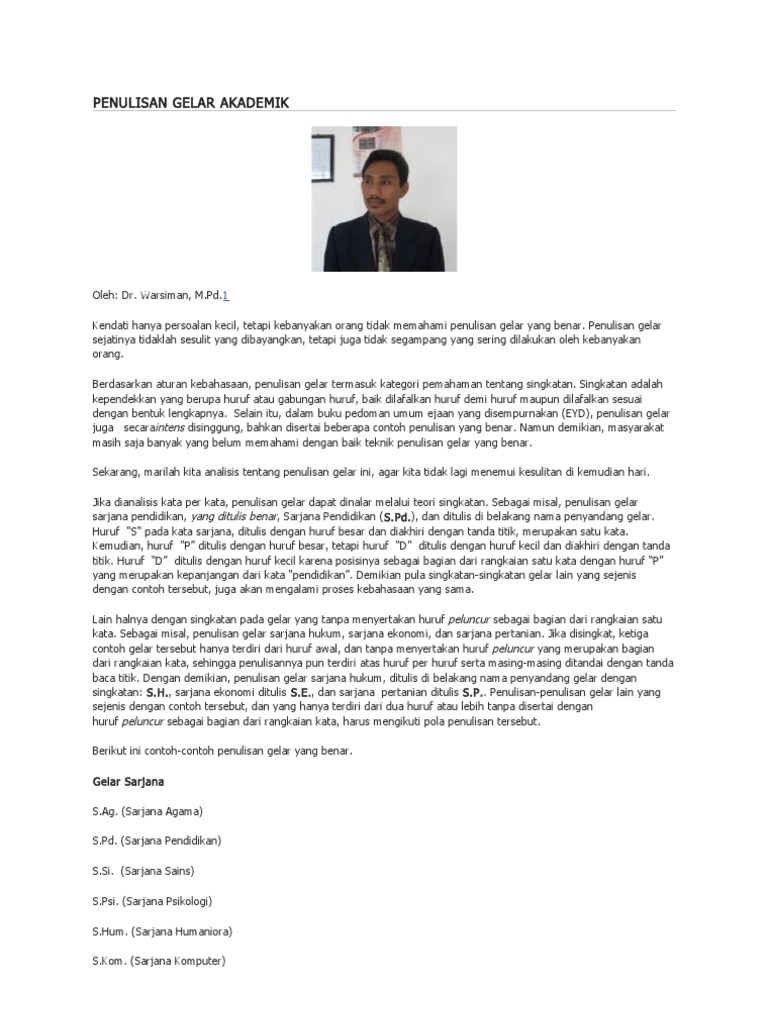 Cara Penulisan Gelar Yang Benar Di Indonesia Sesuai Eyd