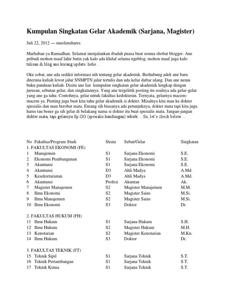 Kepanjangan Gelar Akademik Di Indonesia Lengkap Always Update Rizano Universitas Jambi