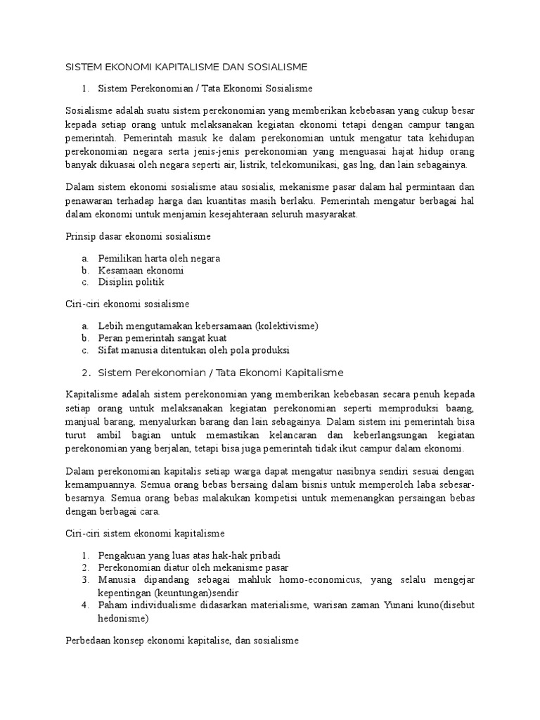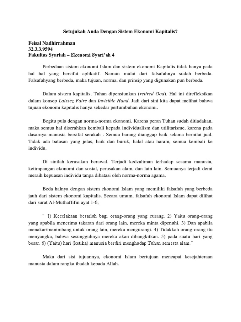 Makalah Dan Artikel Perbedaan Sistem Ekonomi Kapitalis Sosialis Dan Ekonomi Islam Sistem Ekonomi Kapitalis