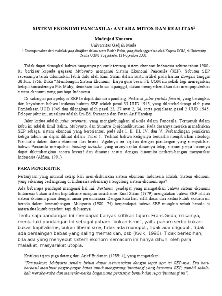 Pdf Sistem Ekonomi Pancasila