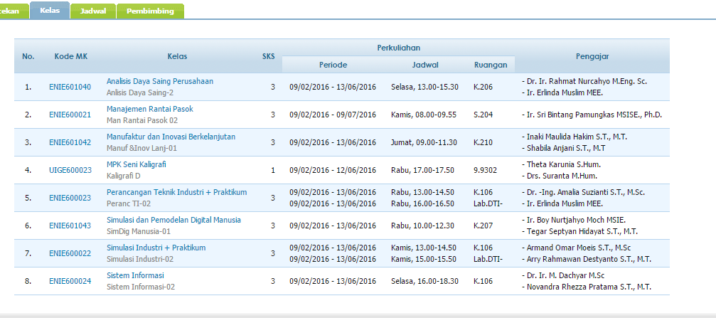 Furi Listiani Mata Kuliah Semester 6 Teknik Industri Ui Khususnya Sistem Informasi