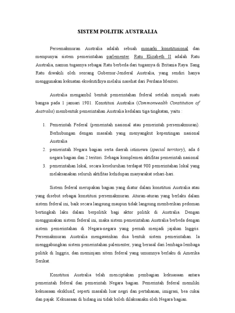 Lecture Points Fundamentals Of Australian Political System Maulana Akbar