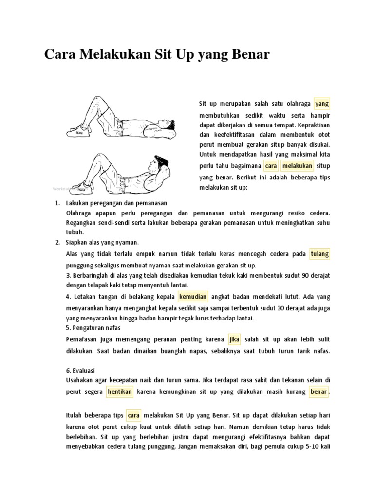 6 Gerakan Yang Benar Saat Melakukan Teknik Dasar Sit Up Adalah A