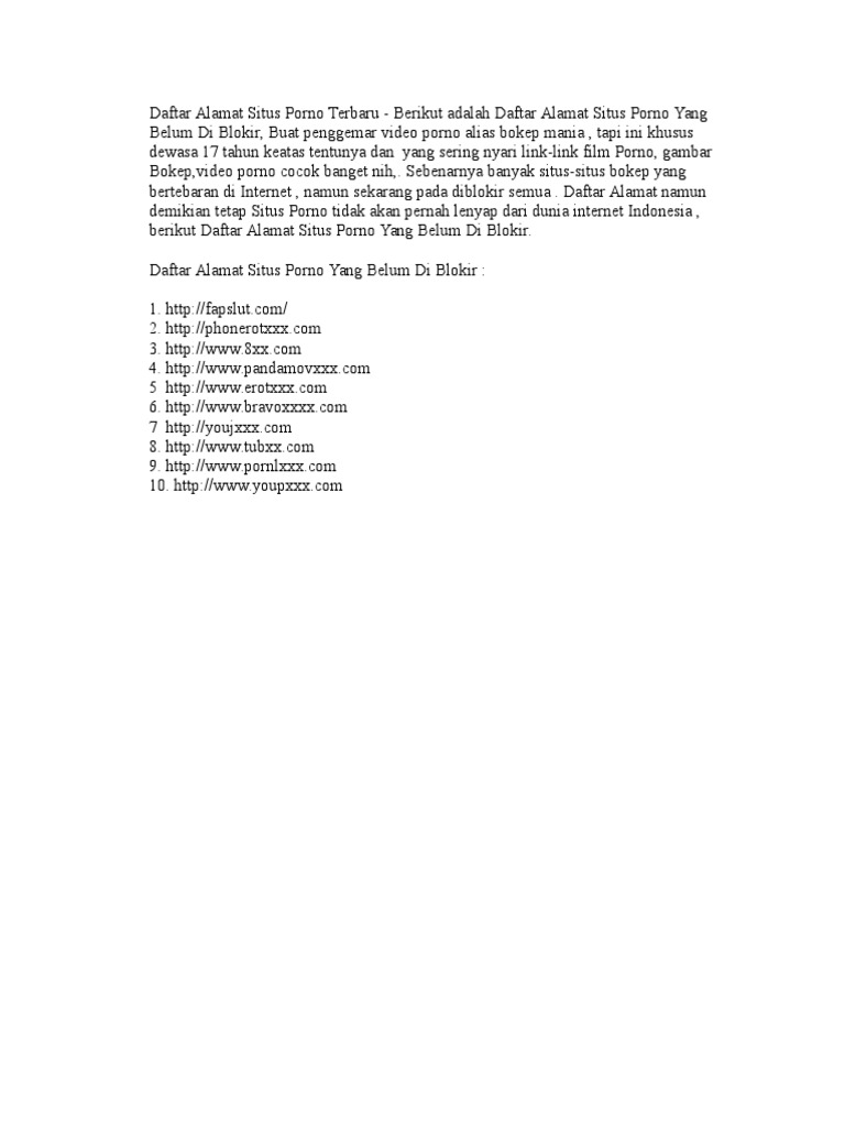 Daftar Alamat Situs Porno Yang Belum Di Blokir Myd