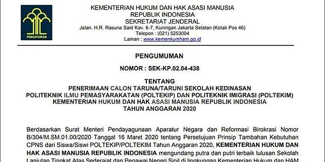 Cpns Kemenkumham Go Id 2020 Situs Resmi Pendaftaran Kemenkumham Online Daftar Ini