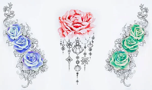 Tahan Air Sementara Tato Stiker Hitam Abu Sketsa Bunga Mawar Seni Tubuh Air Transfer Palsu Tatto Flash Tato Untuk Wanita Gadis Sementara Tato Aliexpress