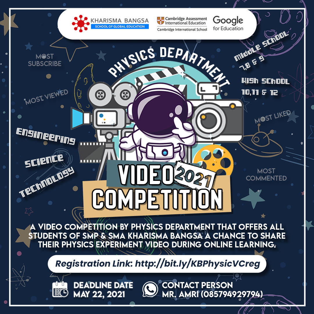 Kharisma Bangsa School On Twitter Kharisma Bangsa Physics Department Video Competition 2021 For Sma Amp Smp Kharisma Bangsa Registration Link Https T Co G2whv7yvda Deadline Date May 22 2021 Contact Person Mr Amri