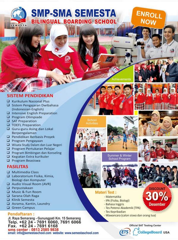 Smp Sma Semesta Sekolah Bilingual Berasrama Seputar Semarang