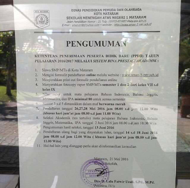 Pengumuman Smkn 1 Mataram Dan Sman 9 Mataram Segera Tukar Tempat