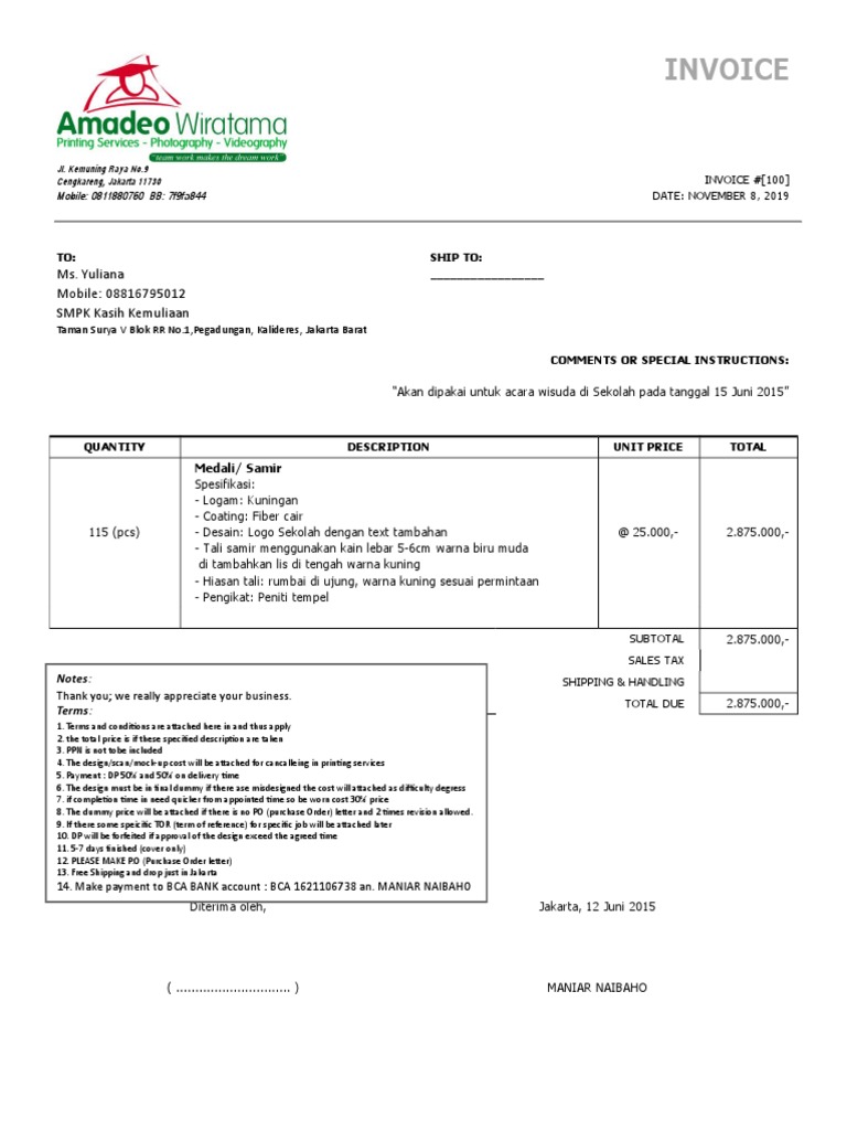 Invoice Amadeo To Kasih Kemuliaan Pdf Marketing Market Economics
