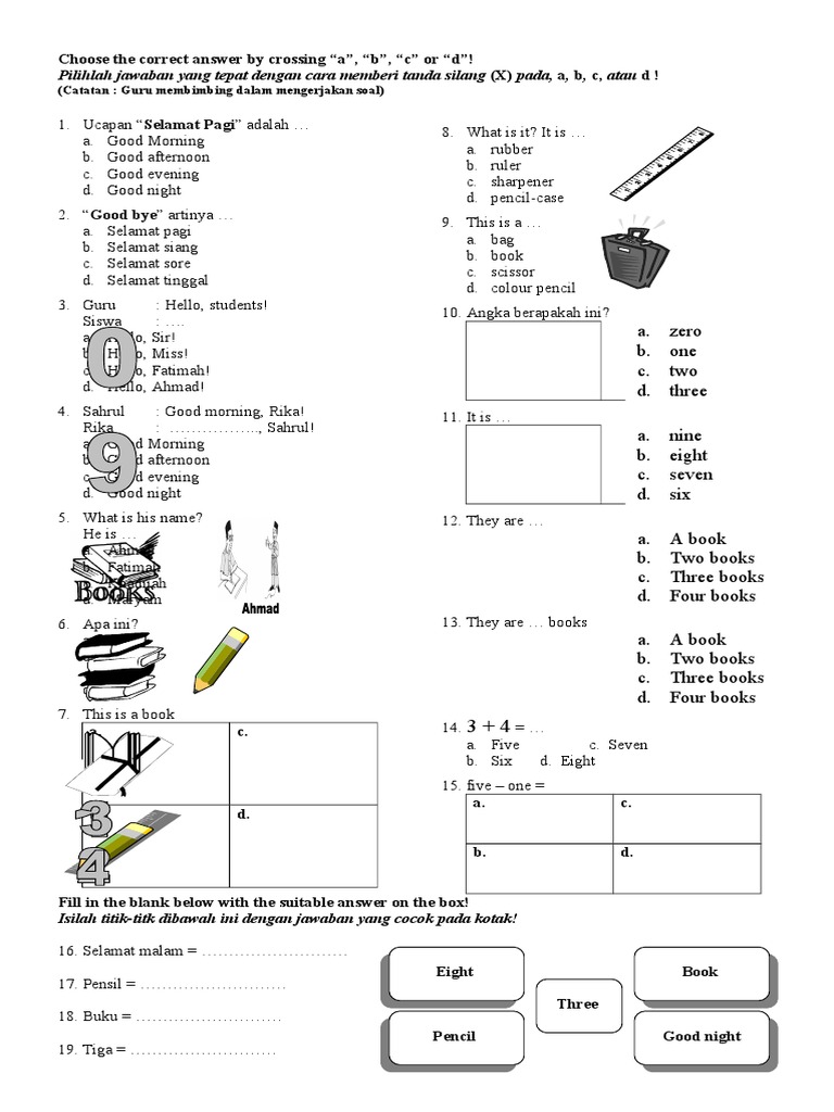 Detail Contoh Soal Ujian Tengah Semester Kelas 1 Sd Bahasa Inggris Ilmu Pengetahuan 8