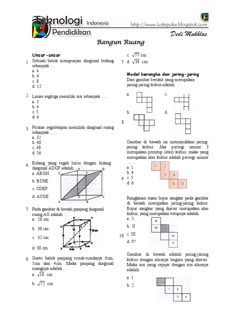 Download Bank Soal Matematika Smp Materi Bangun Ruang Dan Kunci Jawaban