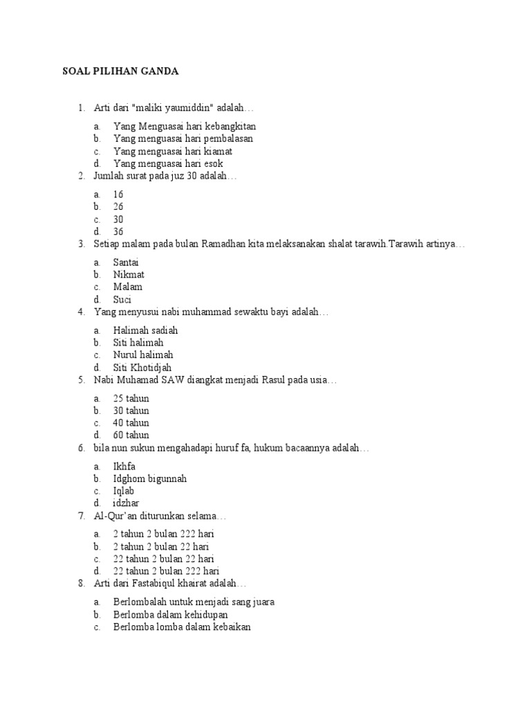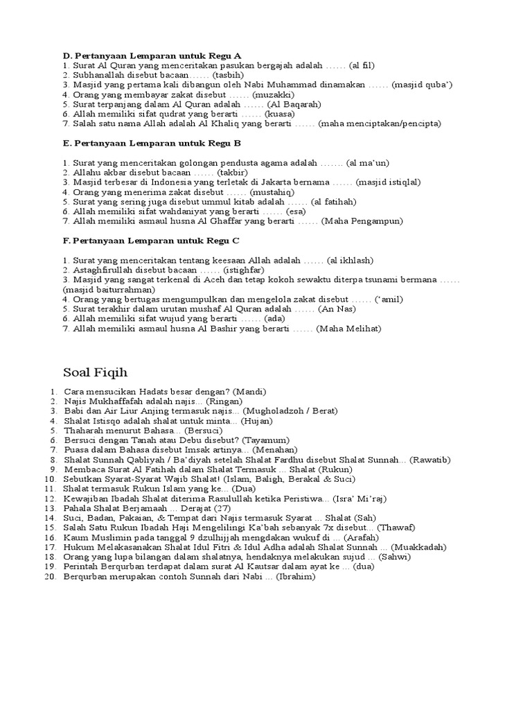 Soal Cerdas Cermat Agama Islam Pdf Document