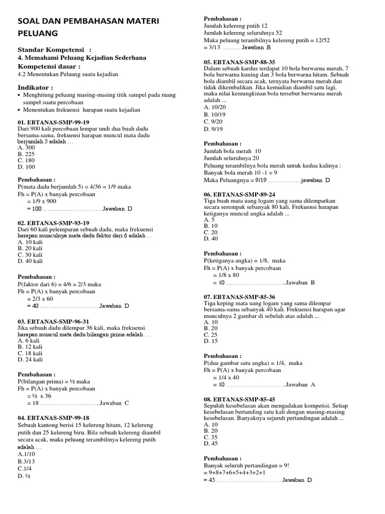 Soal Dan Pembahasan Peluang Smp Madematika