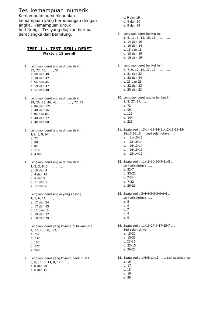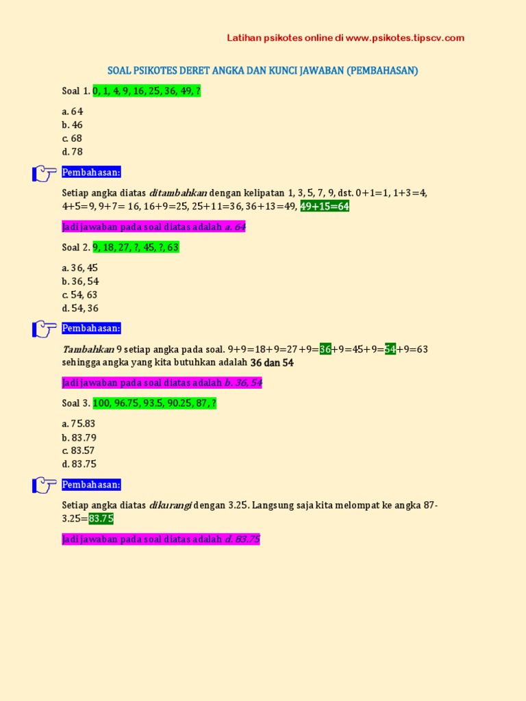 Contoh Soal Psikotes Deret Angka Dan Jawabannya Pdf