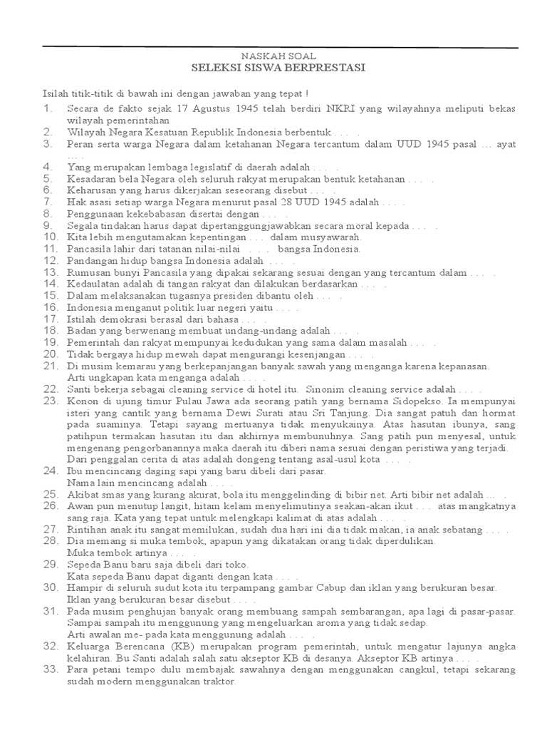 Soal Bahasa Indonesia Lomba Siswa Berprestasi Sd Id Aplikasi