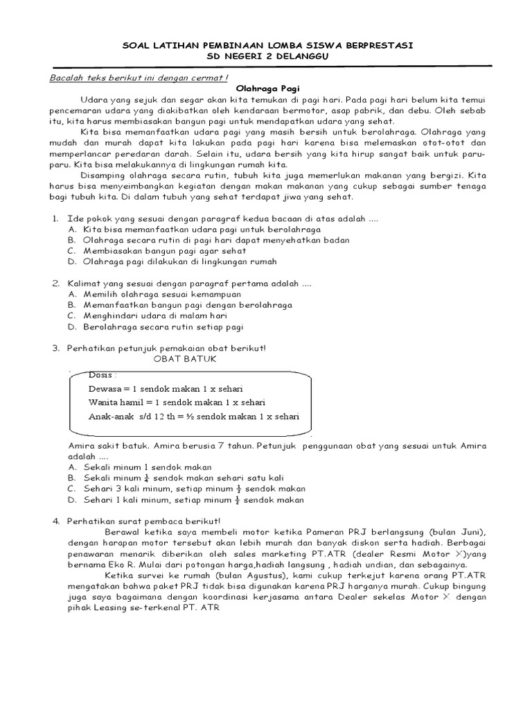Contoh Soal Lomba Siswa Berprestasi Sd Tingkat Kabupaten Dapatkan Contoh
