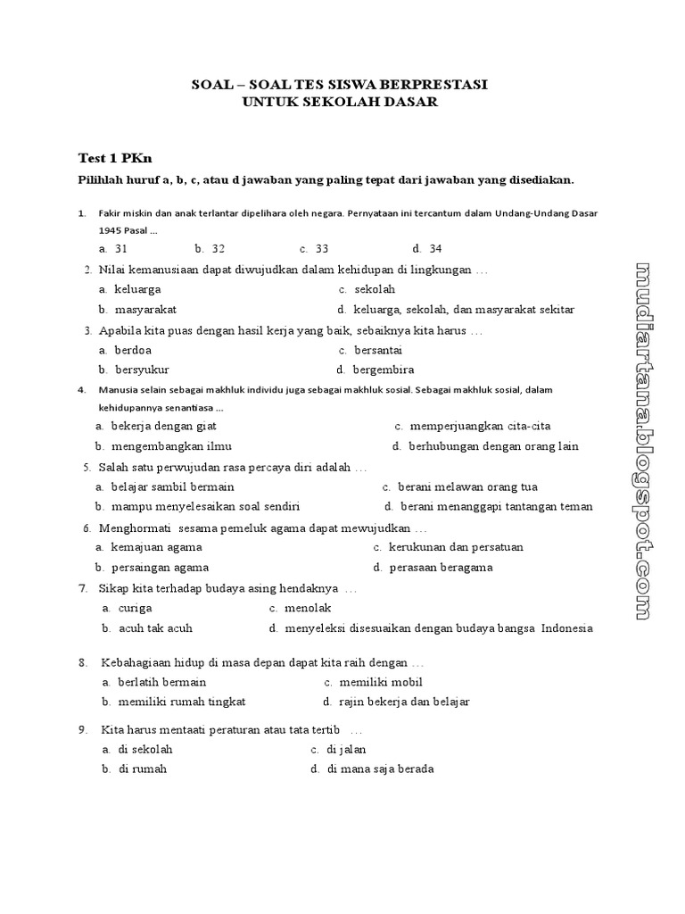 Contoh Soal Siswa Berprestasi Sd Tingkat Kecamatan Barisan Contoh