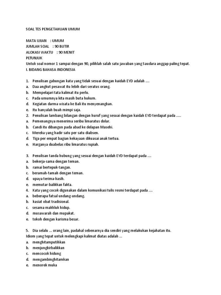 Contoh Soal Ujian Cpns Tes Pengetahuan Umum
