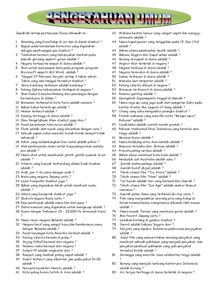 Evert S Blog 100 Soal Pengetahuan Umum Dan Jawabannya