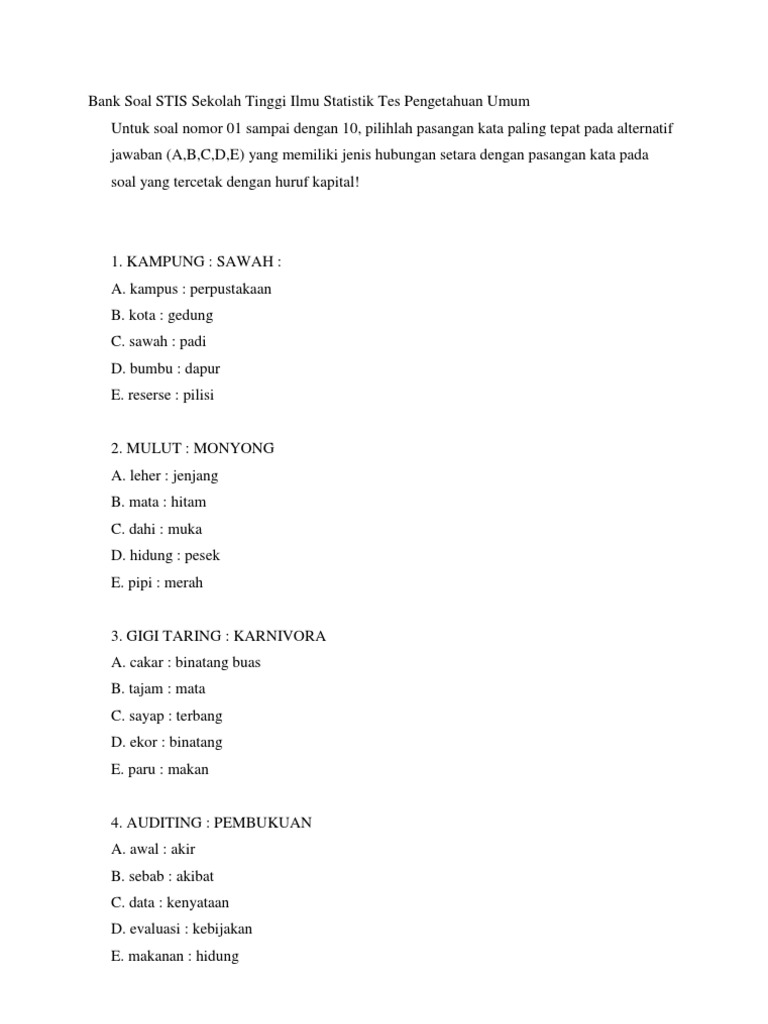 Download Soal Pengetahuan Umum Dan Kunci Jawaban 2017 Untuk Cpns Images Revisi Id