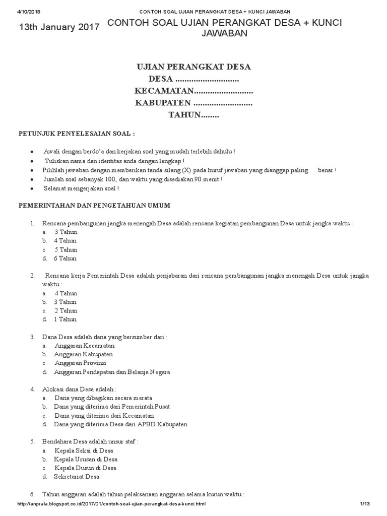 Contoh Soal Tes Perangkat Desa Dan Kunci Jawaban Berbagai Contoh