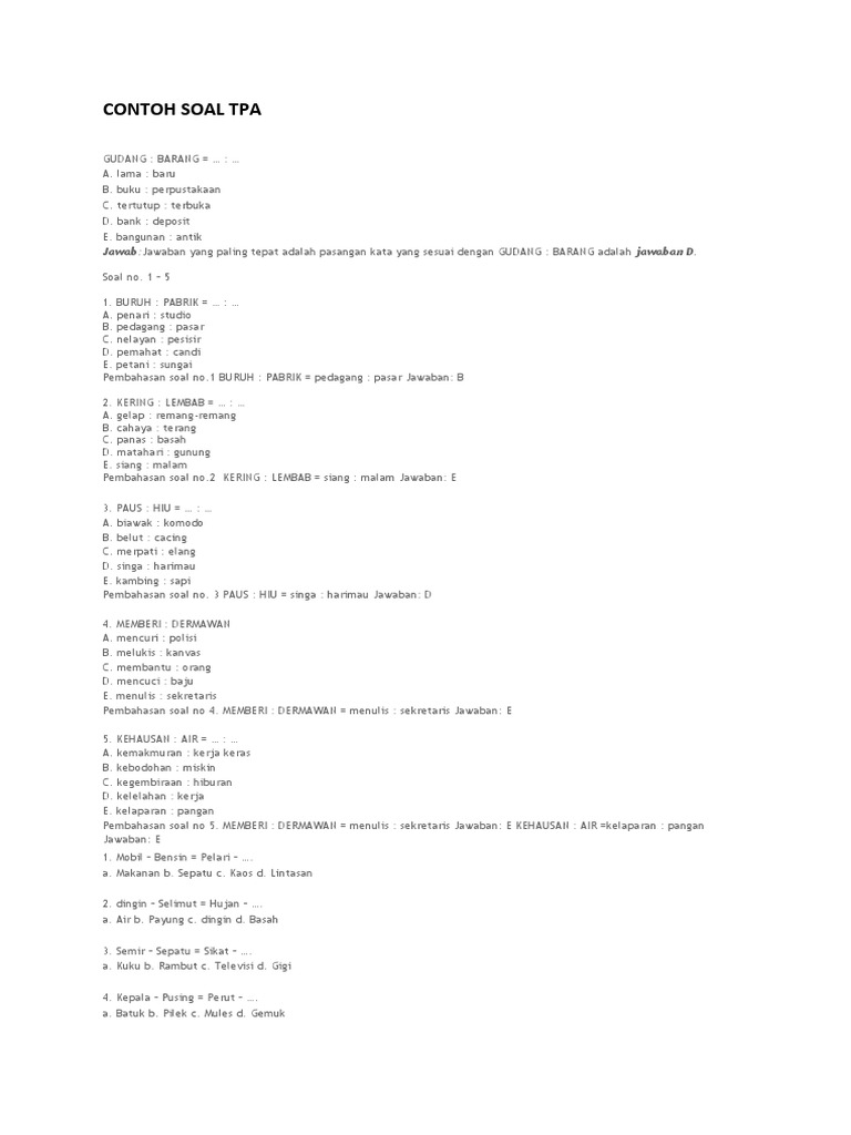 Contoh Soal Tpa Dan Pembahasannya