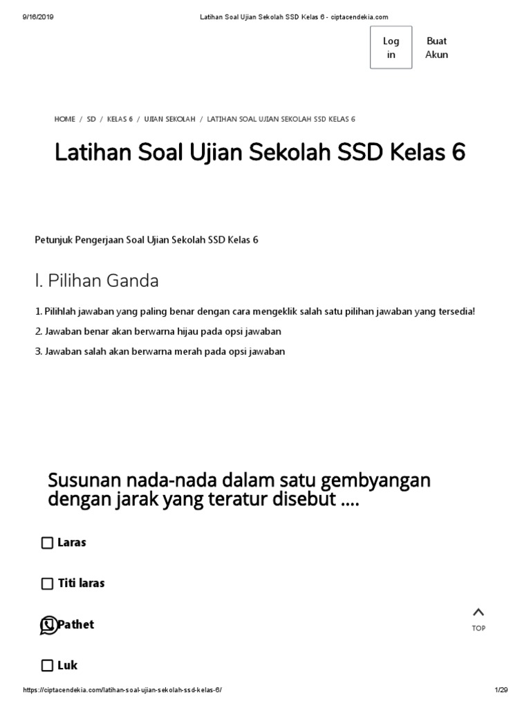 Soal Ujian Sekolah Sbdp Sd Kelas 6 Ciptacendekia Com