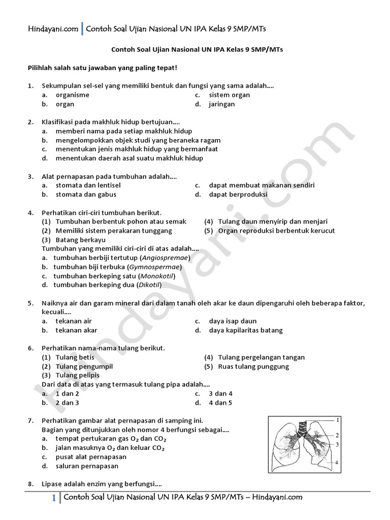 Latihan Soal Ujian Nasional Un Ipa Smp Tahun 2021 Elearning Web Guru