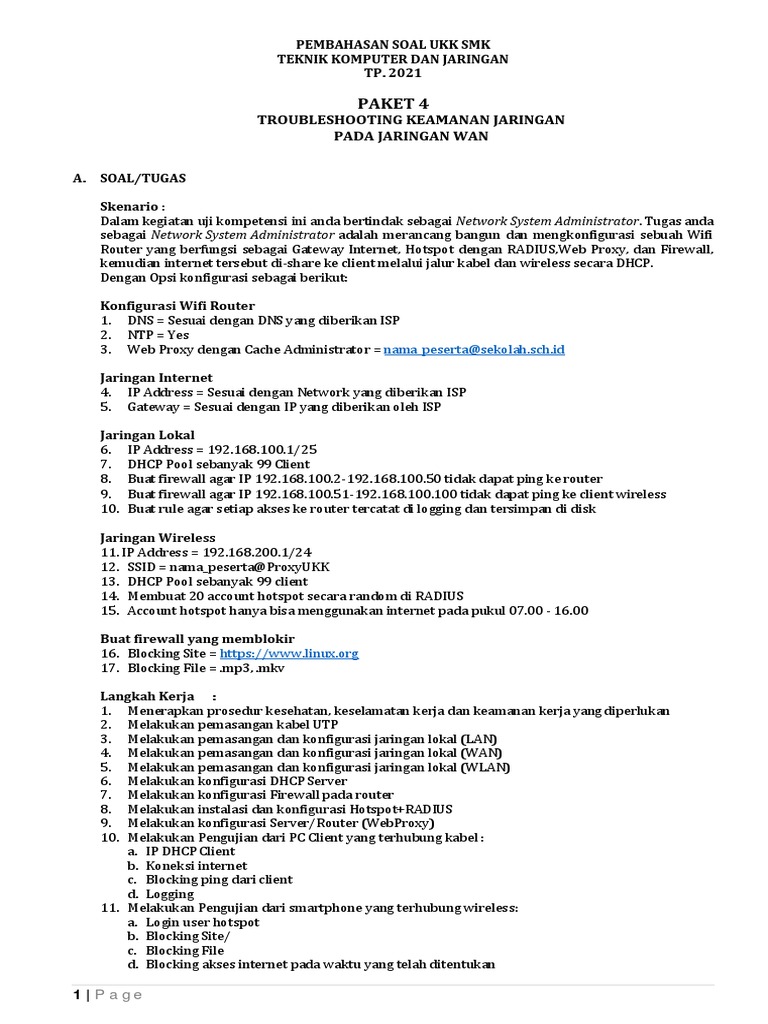 Pembahasan Ukk Tkj Paket 4 Revisi Bonet 2021 Jiwa Ngulik